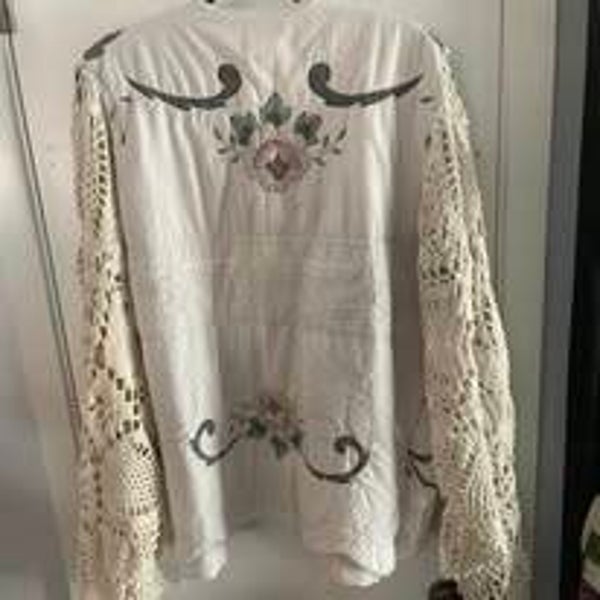 Up cycle quilt coat with crochet sleeves