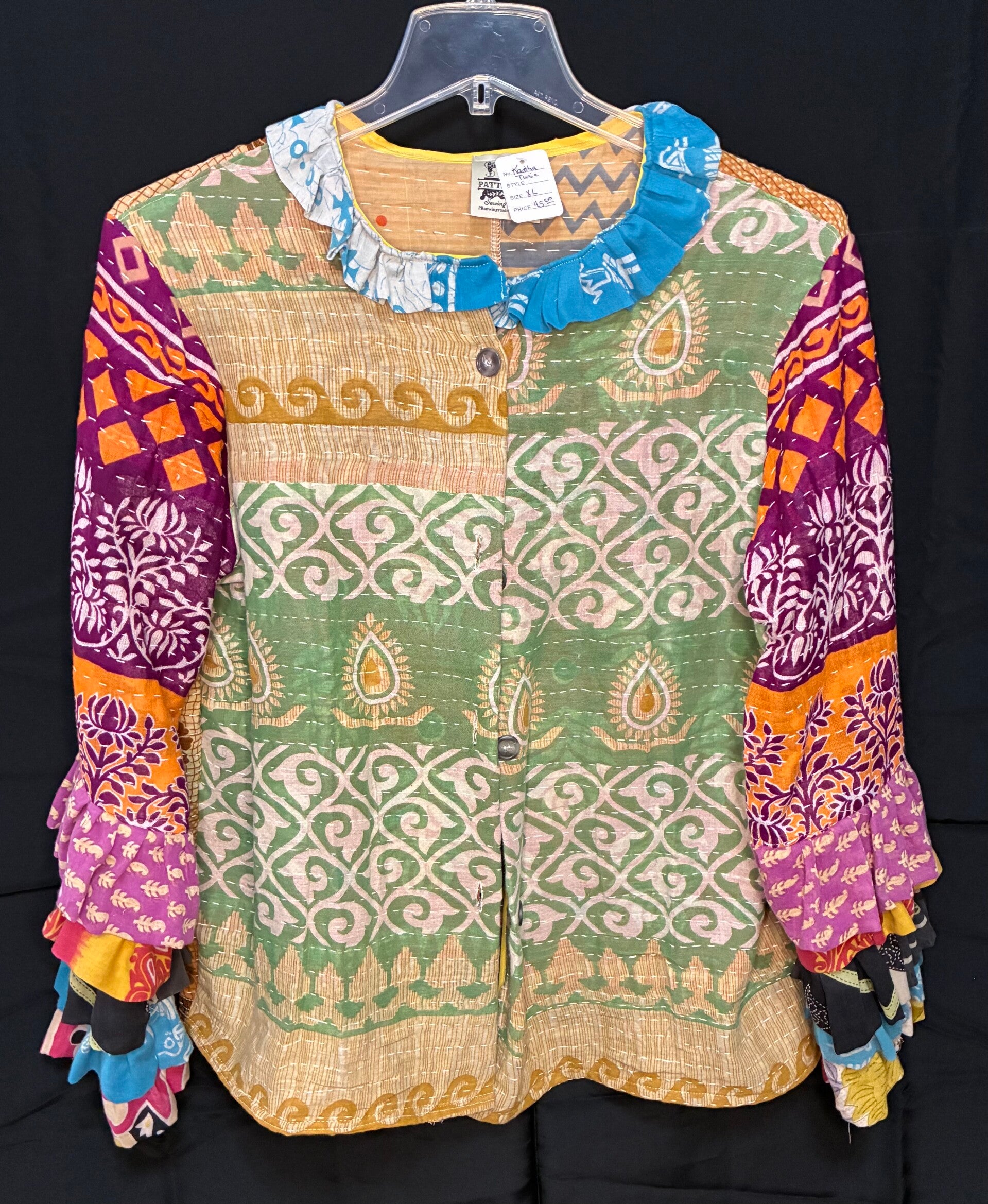 Long Sleeve - Kantha Shirt - Ruffled Sleeves + Collar - Button Down