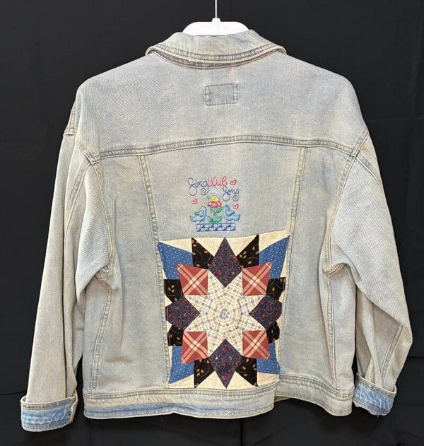 Size M - Jean Jacket - UpCycle - Quilt Inserts + Stitching - "Sing your Song"